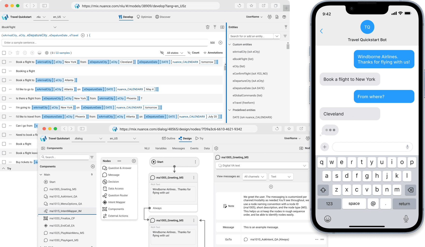 Mix NLU (Develop for beginners, Optimize for experts, and Discover for analysis and validation).