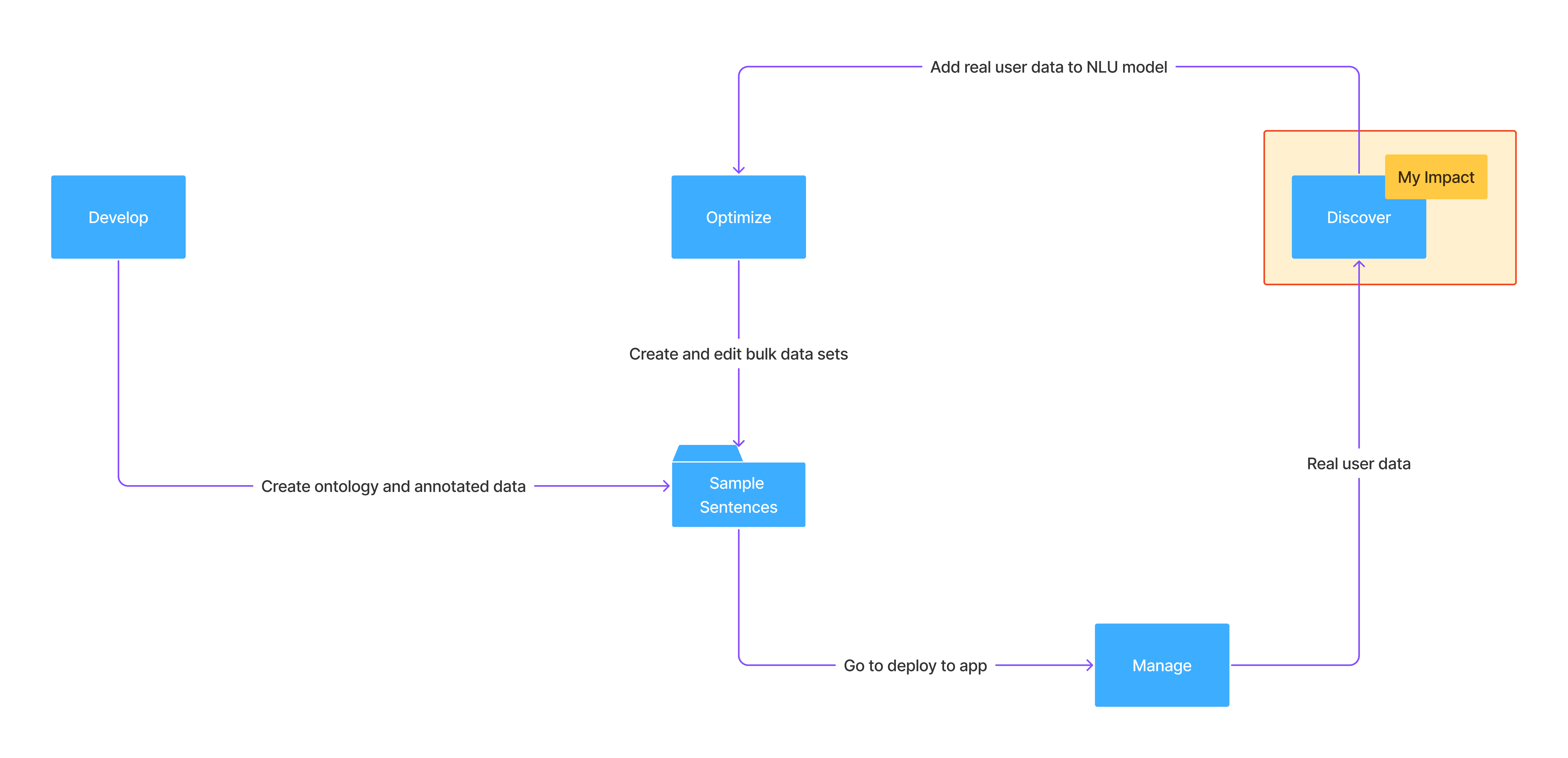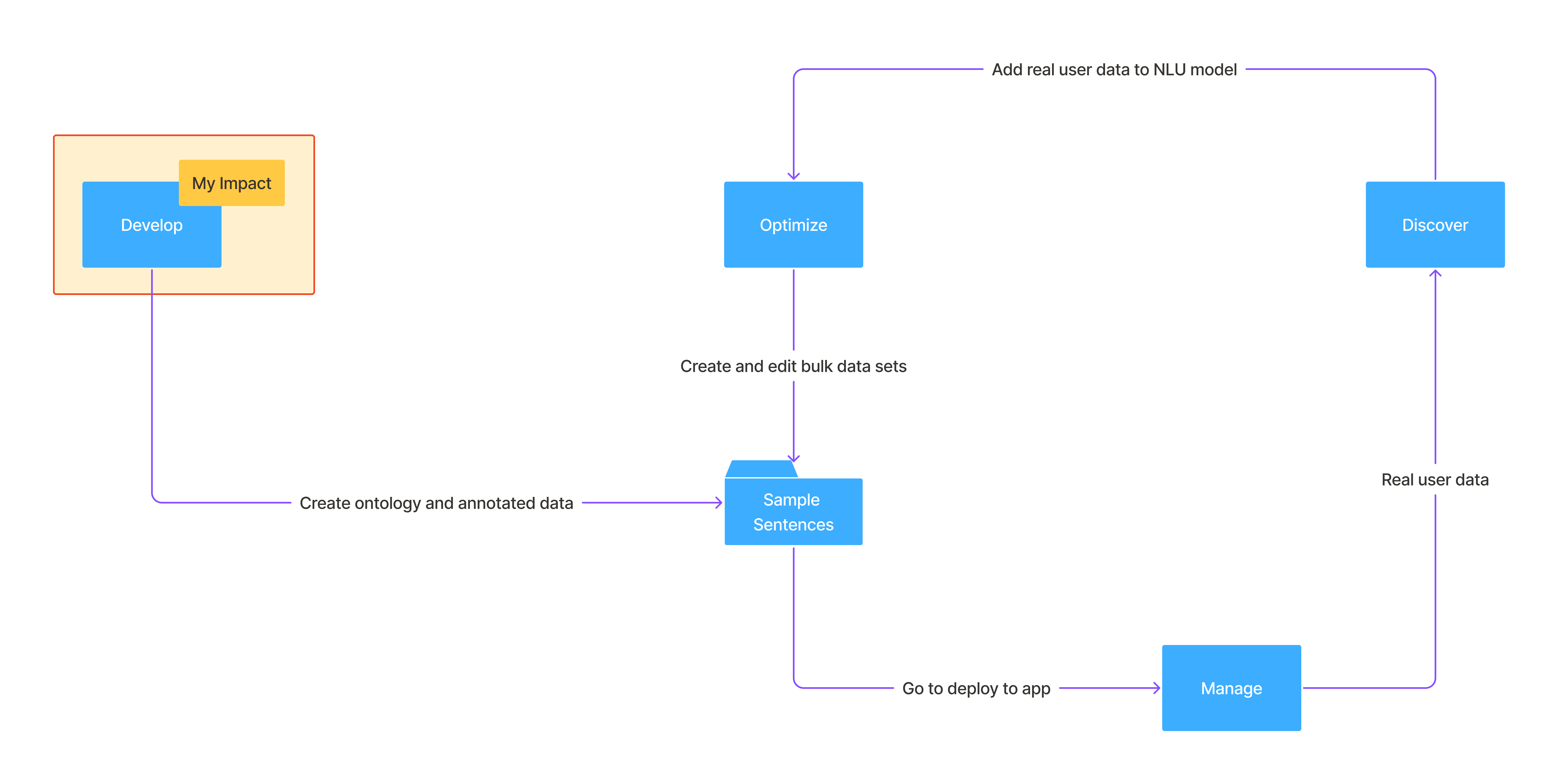 Delivered an NLU suite that scaled with user expertise: beginners could confidently build models in Develop, while experts leveraged Optimize and Discover for deeper insights and faster iteration. This dual-path approach reduced onboarding friction, accelerated expert workflows, and supported enterprise-scale adoption