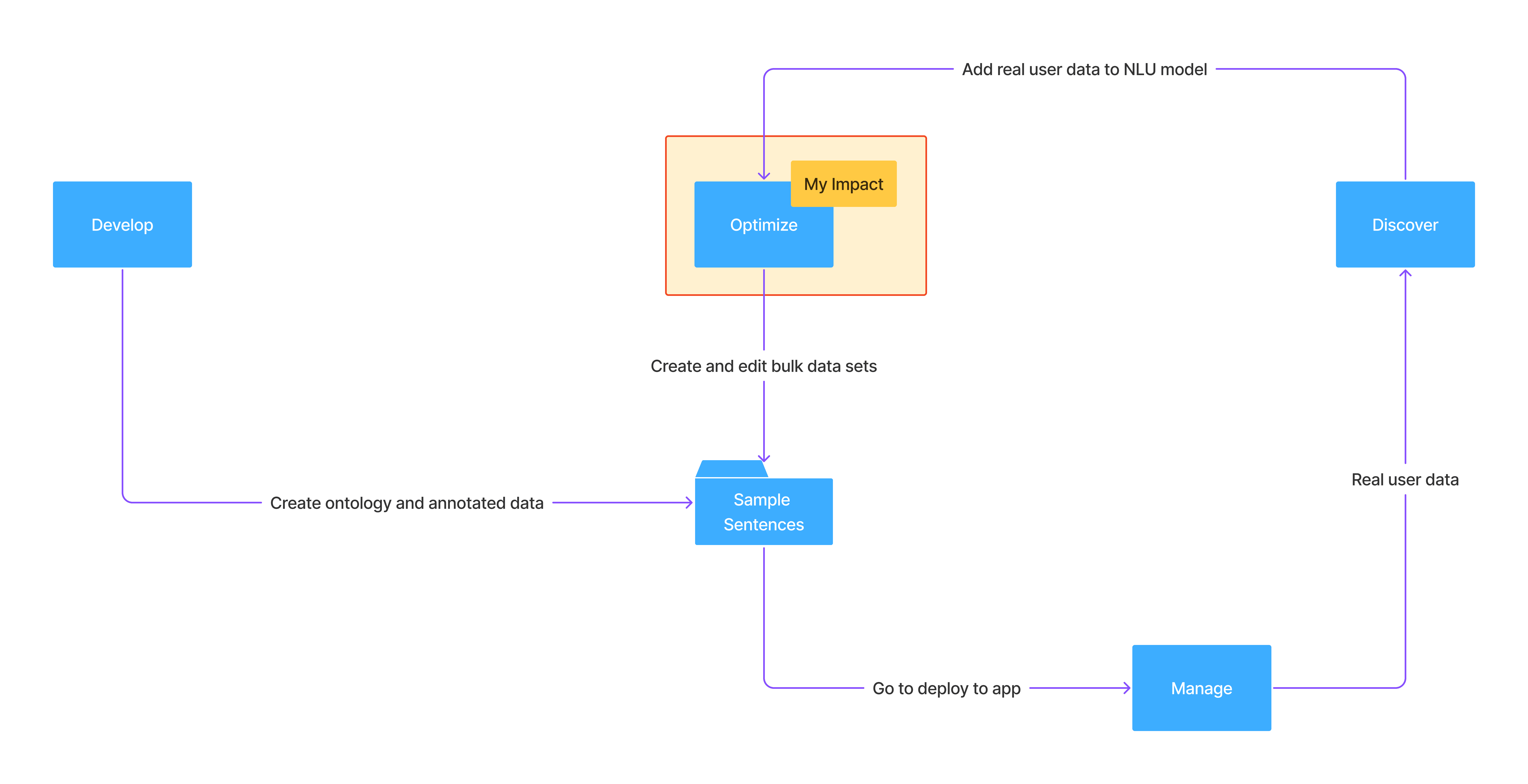 Deliver a cohesive NLU environment that balanced accessibility for beginners with power for experts. This meant aligning Develop for clarity, introducing Optimize for advanced refinement, and expanding Discover to support analysis and validation.