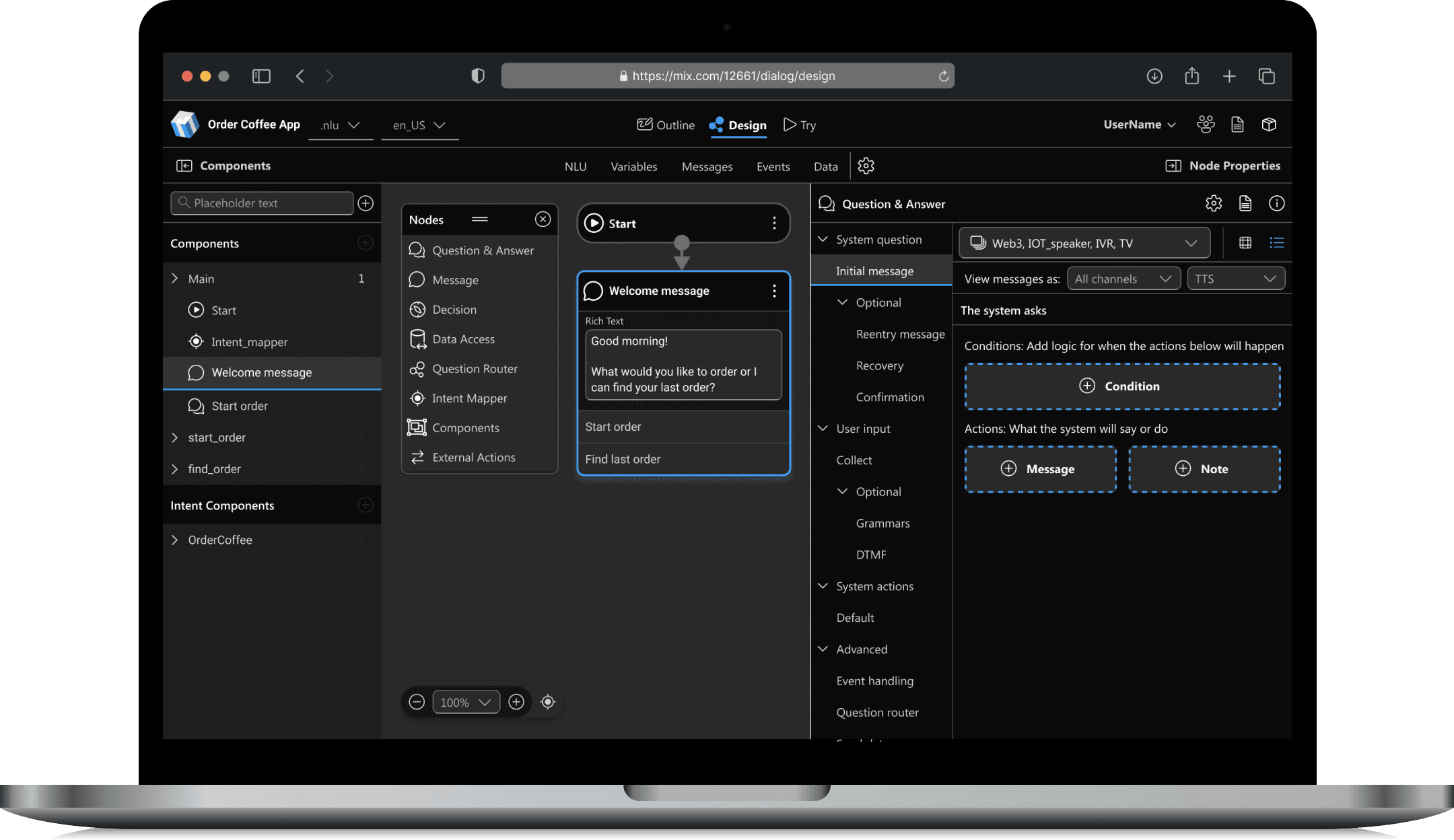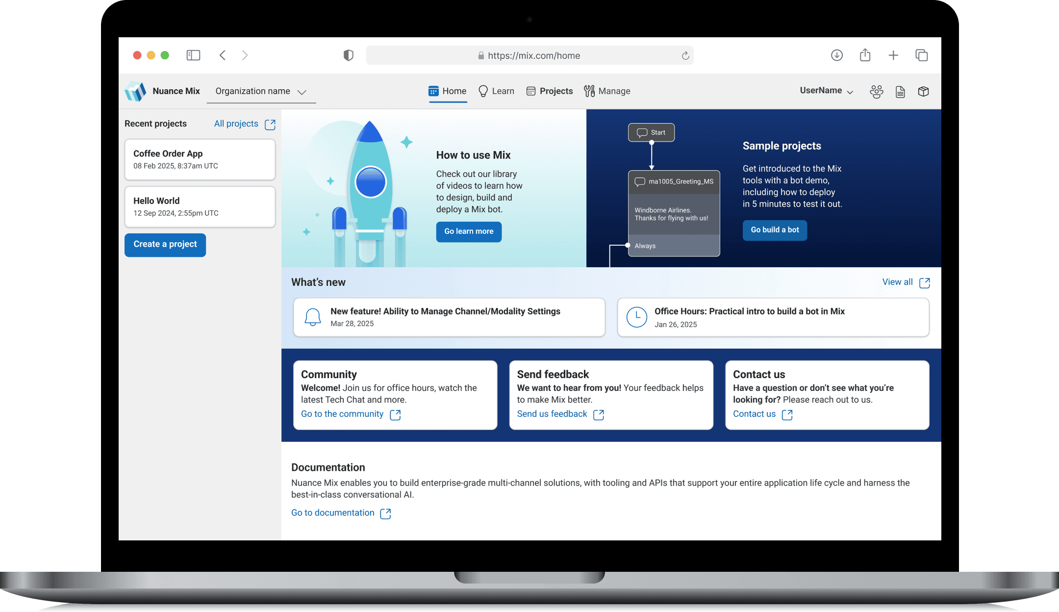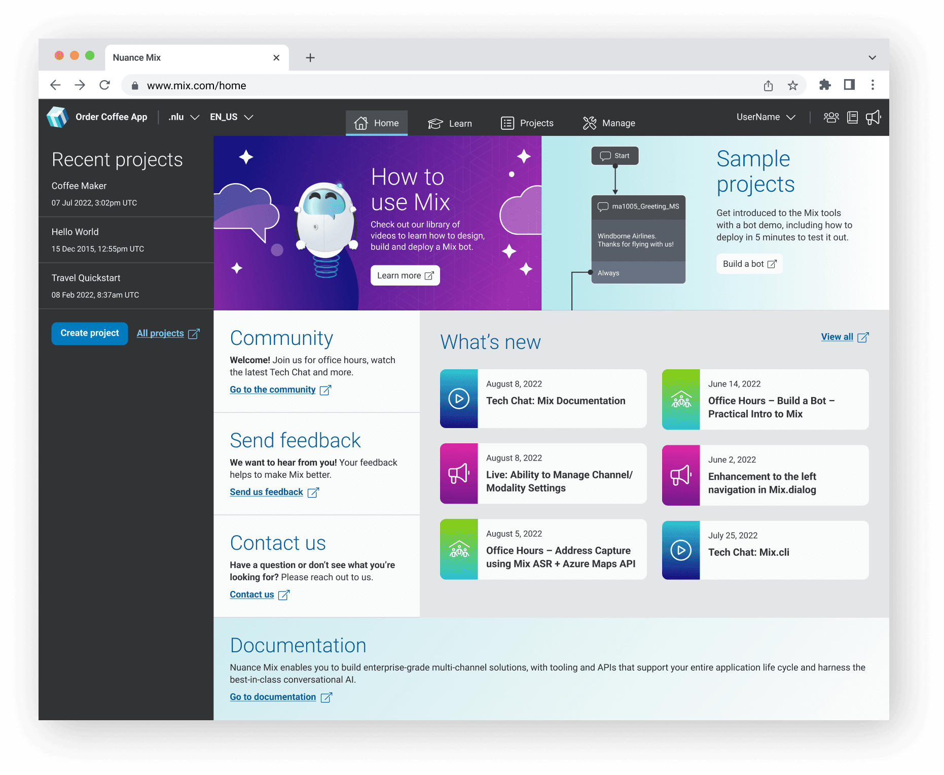 The original interface for the Nuance Mix Platform was a hybrid of light and dark.